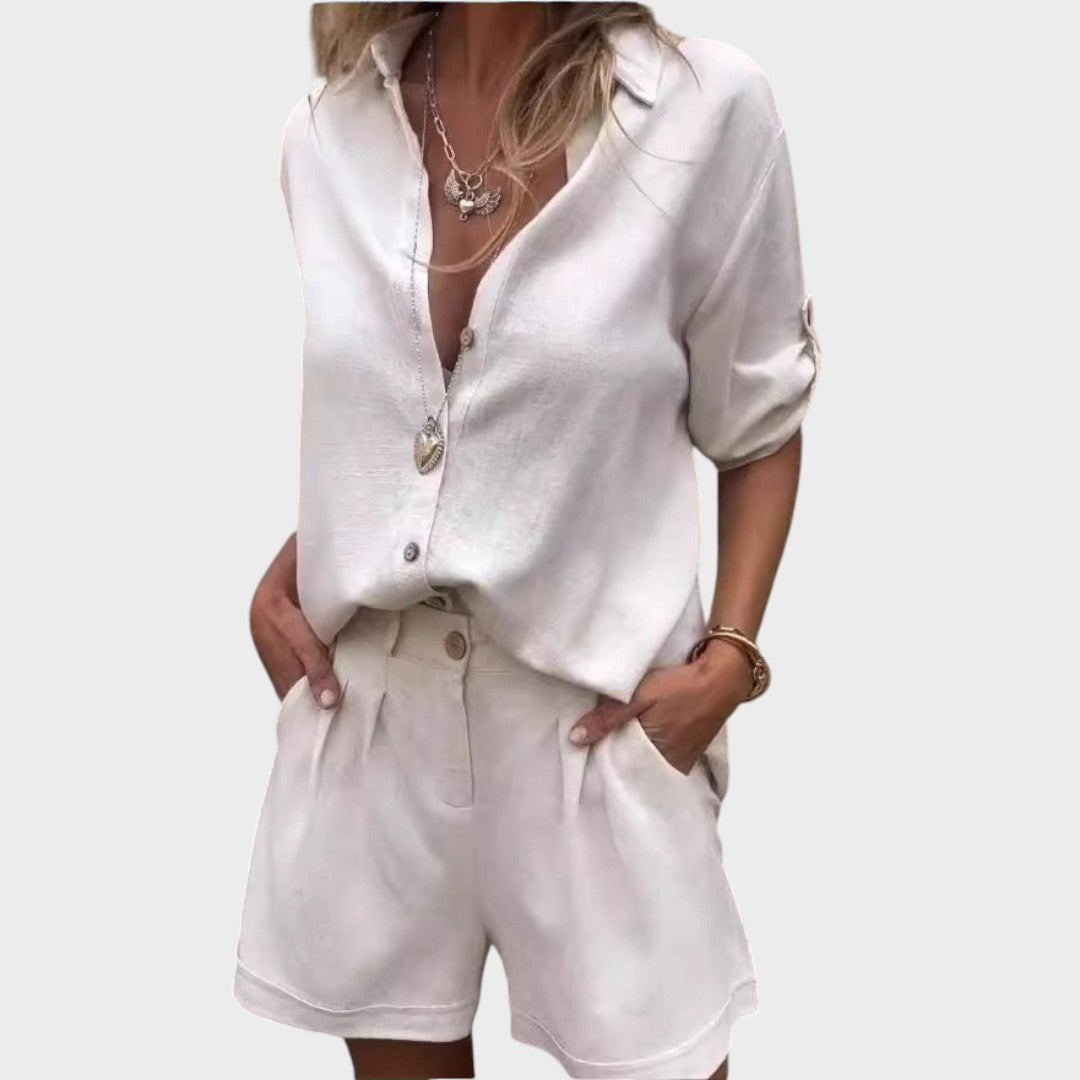 Nora | Conjunto de camisa y pantalón corto de lino