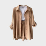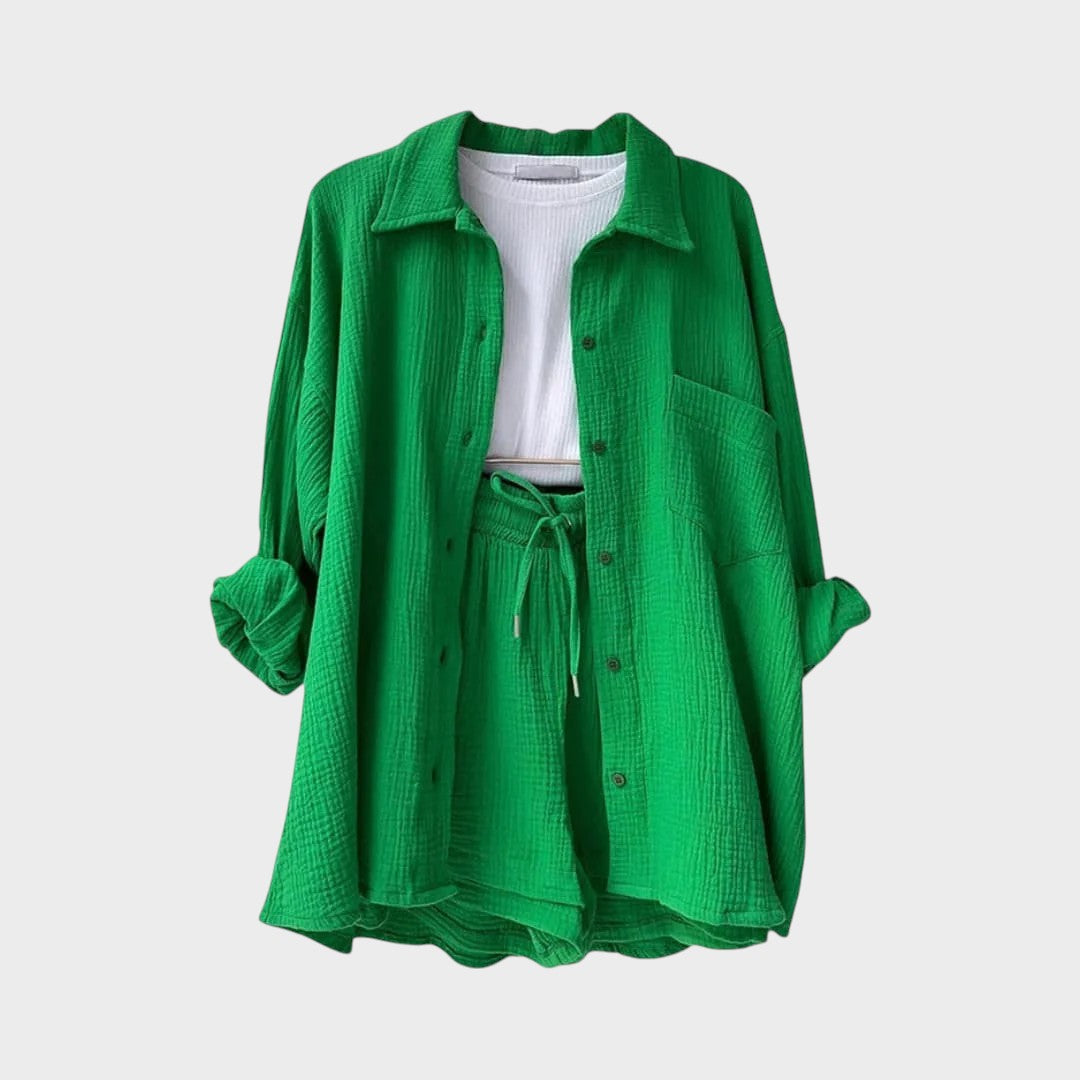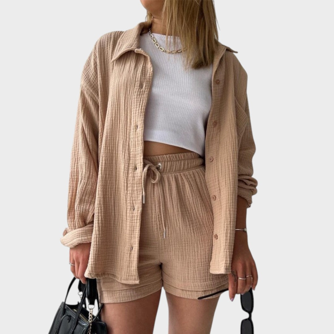 Victoria es un cómodo conjunto de dos piezas diseñado para aportar comodidad y estilo a tu armario. Perfecto para el verano, este conjunto combina tejidos transpirables con un diseño versátil y elegante. Ya sea que te relajes junto a la piscina o disfrutes de un paseo informal, este conjunto ofrece un ajuste elegante que te mantendrá fresca y segura todo el día.