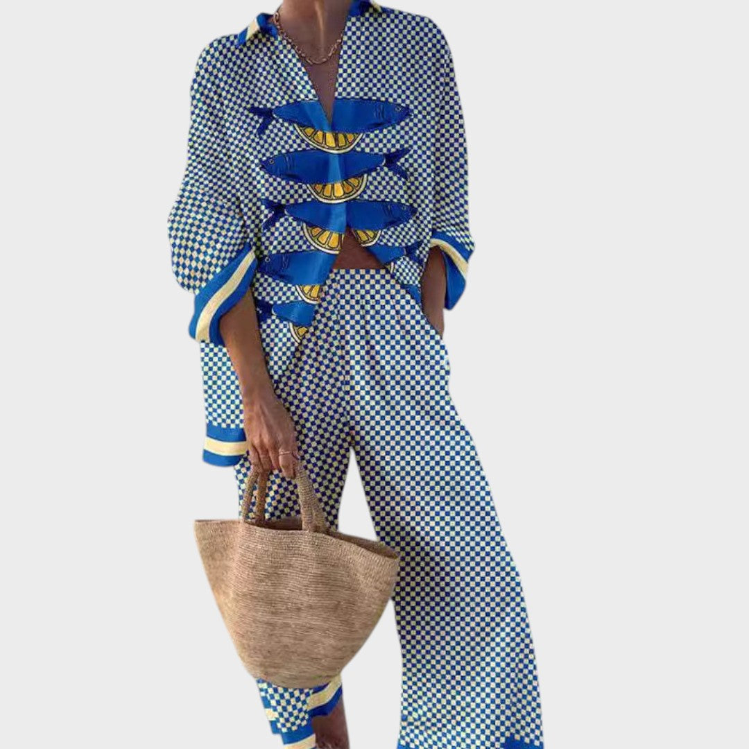 El Conjunto Navy combina el encanto de las rayas clásicas con el toque juguetón de un original estampado marítimo. Ligero, holgado y fácil de llevar, es la prenda perfecta para los días de verano, ya sea un paseo por la costa o un almuerzo al aire libre. Un vestido con personalidad, cómodo y con estilo.
