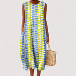 Disfrute de la elegancia relajada de este vestido con corte fluido y estampado artístico. Resalta su belleza natural, ofrece comodidad y estilo sin esfuerzo: una prenda esencial para un día a día creativo.