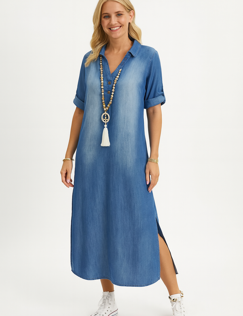 Selene | Denim Luxe con Abertura Lateral